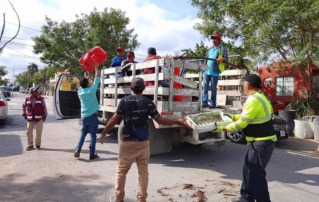 Reynosa, Tam.- La colonia Rincón de las Flores se sumó a la intensa jornada de descacharrización llevada a cabo por trabajadores municipales, atendiendo las indicaciones del Alcalde Carlos Peña Ortiz para brindar seguridad sanitaria a las familias de dicho sector.
