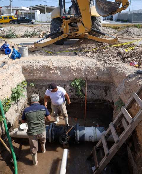 Reynosa, Tam.- Por instrucciones del Presidente Municipal, Carlos Peña Ortiz, la Comisión Municipal de Agua Potable y Alcantarillado de Reynosa lleva a cabo trabajos de interconexión de tubería de agua potable sobre la avenida Ramón Pérez, en la colonia Vista Alta, como parte de las acciones para fortalecer la red de distribución en este sector.