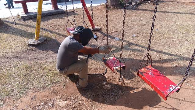 Entre las acciones realizadas se encuentra la reparación de juegos infantiles en la plaza pública de la colonia Satélite, para brindar un espacio seguro y divertido para los niños de la comunidad.