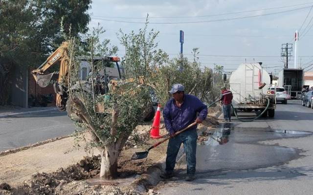 La dependencia también efectúa la reforestación del camello de la calle Herreros, de los fraccionamientos Valle de Bravo y Portal de San Miguel, donde se sembraron 8 arbolitos y se les instaló tierra negra para asegurar su crecimiento y desarrollo.