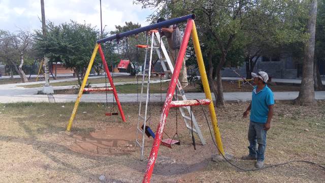 Entre las acciones realizadas se encuentra la reparación de juegos infantiles en la plaza pública de la colonia Satélite, para brindar un espacio seguro y divertido para los niños de la comunidad.