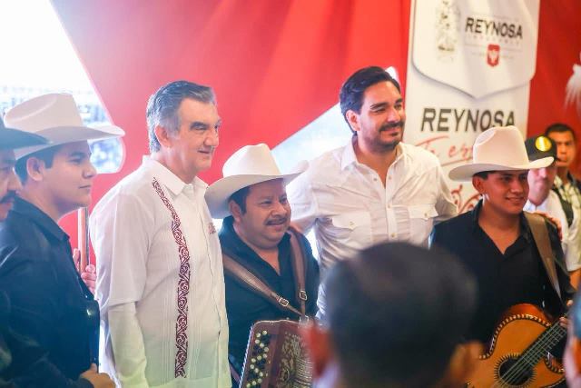 Reynosa, Tam.- El Alcalde de Reynosa, Carlos Peña Ortiz, acompañó al Gobernador Constitucional del Estado, Doctor Américo Villarreal Anaya y a su distinguida esposa, María Santiago de Villarreal, Presidenta Estatal del DIF, en la inauguración de la Feria Tamaulipas 2025, una oportunidad en la que el municipio muestra su riqueza cultural, gastronómica, artística y el poder de su desarrollo económico.