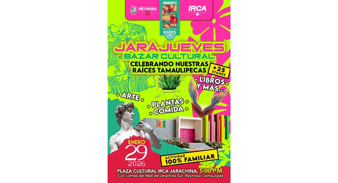 Reynosa, Tam.- El Gobierno de Reynosa, que preside el Alcalde Carlos Peña Ortiz, invita a la ciudadanía a conmemorar el orgullo de nuestra identidad en el marco del mes dedicado a las Raíces Tamaulipecas este 29 de enero en la Plaza Cultural IRCA Jarachina a las 5:00 P. M.
