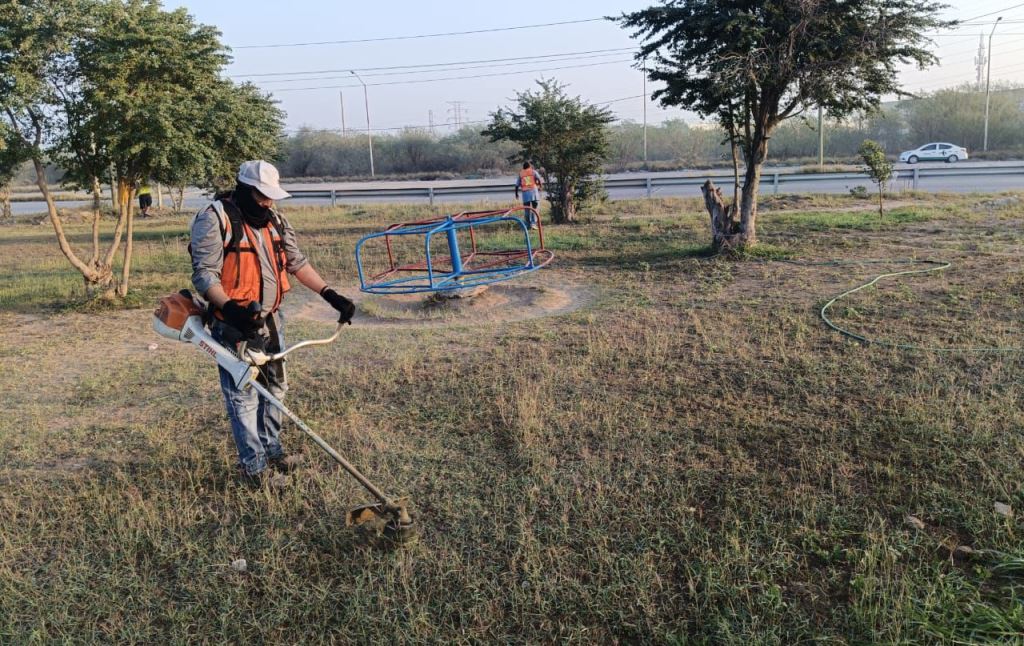 Continuación de limpieza en Calle Segunda, colonia Unidad Obrera. Limpieza de callejón Argüelles 7, Zona Centro. Limpieza, chapoleo, papeleo, barrido y raspado en plaza, colonia Nuevo Reynosa, calle Detroit con calle Los Angeles. Limpieza en avenida Rosalinda Guerrero.