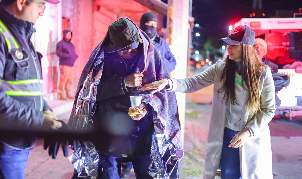 El recorrido fue para detección de personas vulnerables y ofrecer traslado al Albergue habilitado en el Polideportivo, además de entrega de cobijas, calcetines, pan y chocolate caliente, así como el apoyo de Bienestar Animal, quien llevó alimento para las mascotas.