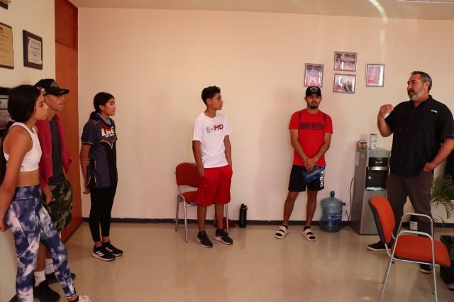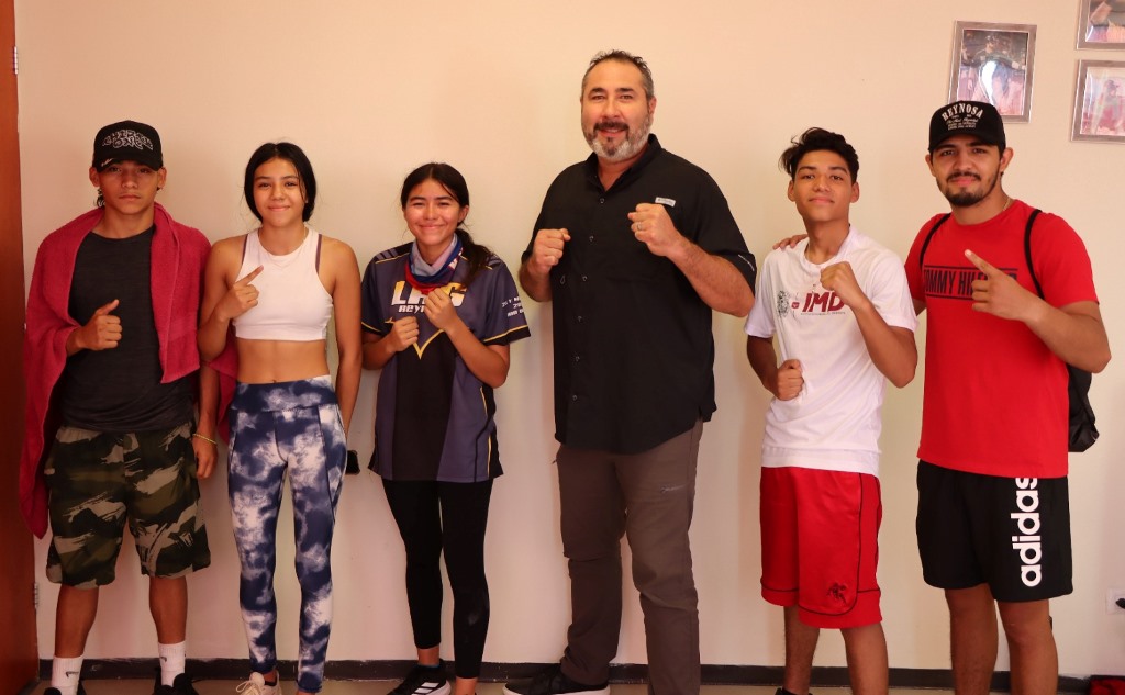 Reynosa, Tam.- El Alcalde Carlos Peña Ortiz como parte de las acciones que está tomando para fortalecer el desarrollo integral de los deportistas locales, se dio una plática motivacional a jóvenes atletas de boxeo, beisbol 5 y al reconocido pugilista profesional Hugo “El Tigre” Castañeda por medio del Instituto Municipal del Deporte .