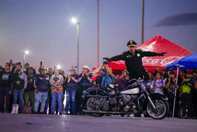 Con la guía de Alejandro Galán Michel, Comisario Internacional del Escuadrón de Acrobacia Clásica y la Confederación Internacional de Motociclistas Oficiales y Policías de Caminos, los asistentes disfrutaron este sábado 4 de octubre de un show de impresionantes acrobacias, además de locales gastronómicos y música en vivo.