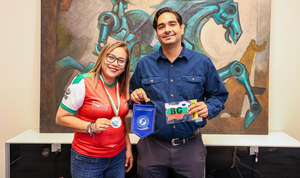 Reynosa, Tam.- El Presidente Municipal, Carlos Peña Ortiz, recibió a la Maestra reynosense Nadia Maraty Del Carmen Zedillo, entrenadora de Voleibol del equipo mexicano en los Juegos de los Trabajadores, celebrados en Saint Constanine y Helena, Bulgaria, donde obtuvieron el Primer Lugar Internacional.