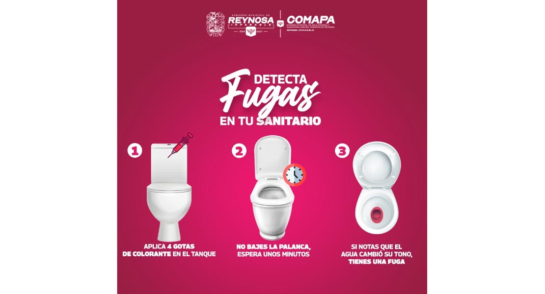 Reynosa, Tam.- La Comisión Municipal de Agua Potable y Alcantarillado de Reynosa recomienda a la ciudadanía revisar periódicamente su sanitario para detectar fugas silenciosas, ya que una sola puede desperdiciar hasta 200 litros de agua al día, afectando el consumo y la disponibilidad de este recurso.