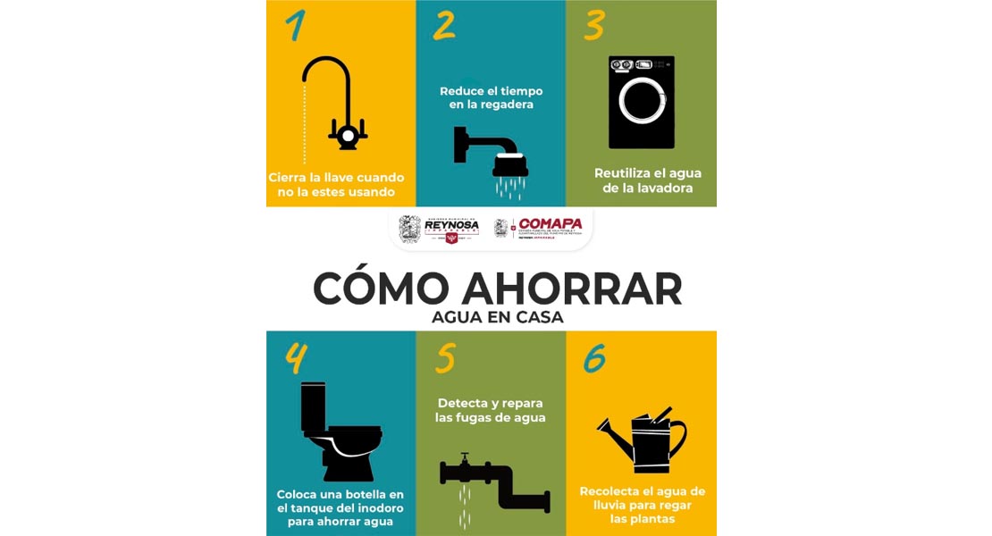Reynosa, Tam.- La Comisión Municipal de Agua Potable y Alcantarillado (COMAPA) de Reynosa hace un llamado a la ciudadanía a tomar acciones cotidianas que permitan ahorrar agua en el hogar y contribuir al cuidado de este recurso vital, especialmente ante la temporada de escasez de agua que atraviesa nuestra región.