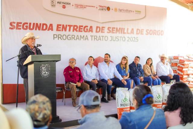 El beneficio fue entregado a 185 productores de más de 35 ejidos, que con más de 26 Toneladas de semilla de sorgo para activar 3,698 hectáreas, generando 555 empleos entre las mismas familias y vecinos que aportan su mano de obra para cosechar de manera Imparable.