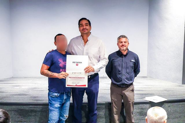 Reynosa, Tam.- En un emotivo acto, el Presidente Municipal de Reynosa, Carlos Peña Ortiz, entregó reconocimientos a hombres y mujeres que superaron una etapa de adicción gracias al programa «Tazo Dorado», que sigue cambiando vidas desde la Secretaría de Bienestar Social del R. Ayuntamiento.