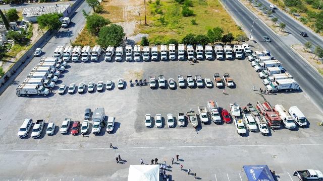 Unidades motrices de Protección Civil y Bomberos, Medio Ambiente, Control y Bienestar Animal, Servicios Públicos, Policía Vial, entre otras, recibieron la pegatina que indica el abastecimiento de combustible por parte de Petróleos Mexicanos.