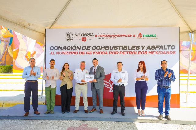 A nombre del Presidente Municipal, el Secretario del Ayuntamiento, Antonio Joaquín de León Villarreal agradeció la entrega de 140 Toneladas de asfalto, 40 Mil litros de Diésel y 100 Mil litros de Gasolina, «PEMEX es un gran amigo de Reynosa, y las dependencias de Gobierno nos coordinamos para dar grandes resultados», dijo, a la vez que reconoció el valor de la donación por parte del Gobierno de la Doctora Claudia Sheinbaum.