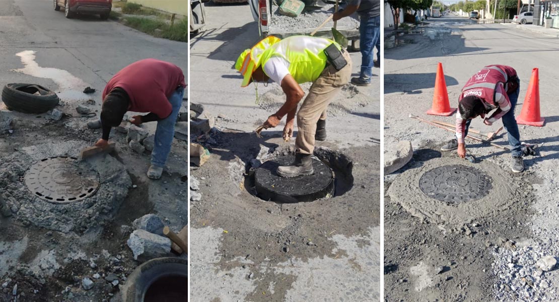 Reynosa, Tam.- Por instrucciones del Alcalde, Carlos Peña Ortiz, la Comisión Municipal de Agua Potable y Alcantarillado de Reynosa llevó a cabo esta semana la instalación y reemplazo de brocales en diversos sectores de la ciudad, con el propósito de garantizar la seguridad vial de peatones y automovilistas, así como mantener en óptimas condiciones la infraestructura sanitaria.