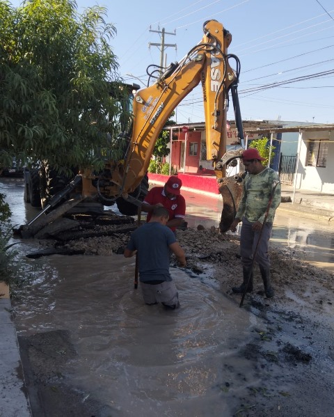Reynosa, Tam.- Por instrucciones del Alcalde, Carlos Peña Ortiz, la Comisión Municipal de Agua Potable y Alcantarillado de Reynosa continúa trabajando en la reparación de fugas de agua potable en diferentes puntos de la ciudad, con el objetivo de evitar el desperdicio del vital líquido y mejorar el suministro.