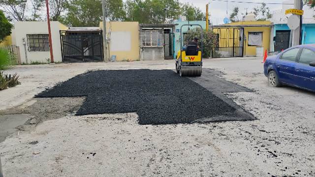 – Reparación de baches con carpeta caliente en la calle Oaxaca, colonia Rodriguez.