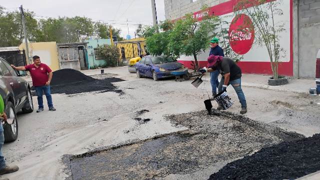 Reynosa, Tam.- El Presidente Municipal Carlos Peña Ortiz trabaja en la reparación de baches en diferentes colonias de Reynosa con la finalidad de lograr una mejor fluidez vial favoreciendo la seguridad de automovilistas y peatones.