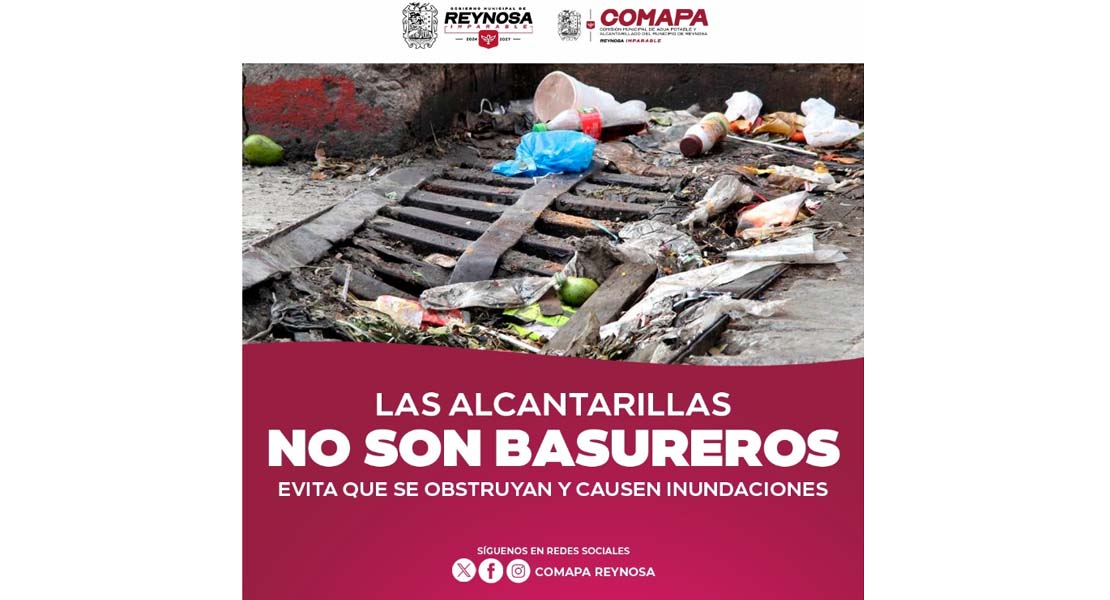 Reynosa, Tam.- La Comisión Municipal de Agua Potable y Alcantarillado de Reynosa hace un atento exhorto a la ciudadanía a no arrojar basura, grasa ni desechos sólidos en la vía pública ni en las alcantarillas, ya que estas malas prácticas provocan obstrucciones en las redes pluviales y sanitarias, lo que puede derivar en encharcamientos e inundaciones.