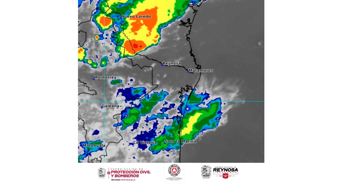 Actualmente, una gran saturación de humedad alimenta una tormenta que incrementó de 24% a 67% su intensidad, con recorrido hacia Díaz Ordaz, Camargo, Reynosa, Río Bravo y Matamoros.