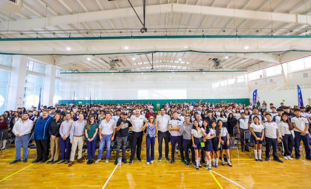 Reynosa, Tam.- Más de Mil jóvenes reynosenses se reunieron con el Presidente Carlos Peña Ortiz en el Polideportivo Reynosa, donde presentó a la boxeadora Jackie Nava, «La Princesa Azteca», quien impartió la plática motivacional El Poder de Tu Miedo.