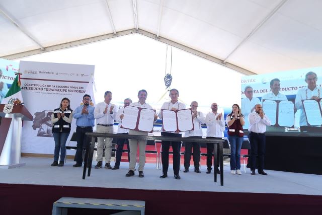 En un evento histórico, en la Planta de Rebombeo No. 1, el gobernador y el director de la Conagua firmaron también el convenio de colaboración para la ejecución de la segunda línea del acueducto de la presa Vicente Guerrero a Ciudad Victoria, el cual comprende 54.7 kilómetros para disposición y saneamiento del agua para consumo personal y doméstico a la ciudadanía.