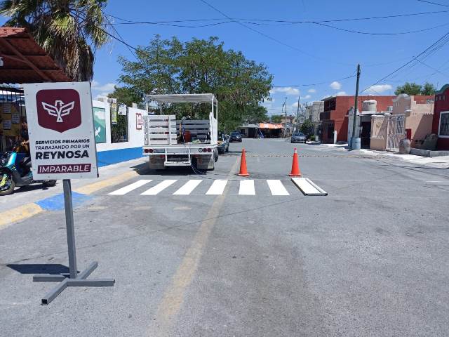 Reynosa, Tam.- El Presidente Municipal Carlos Peña Ortiz mantiene en marcha el programa de rehabilitación de señalización peatonal en instituciones educativas de Reynosa, con el objetivo de garantizar la seguridad de estudiantes, padres de familia y de la población en general.