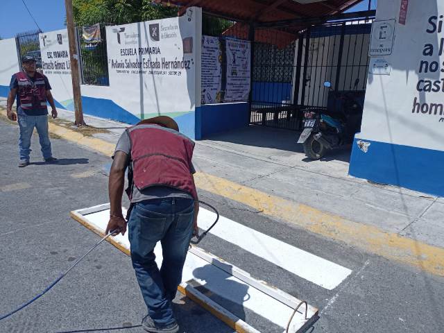 – Escuela primaria Antonio Salvador Estrada en colonia Puerta del Sol, se pintó el cruce peatonal.