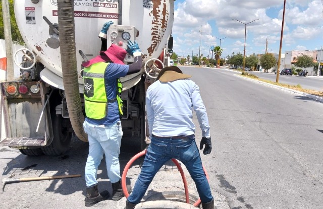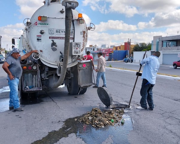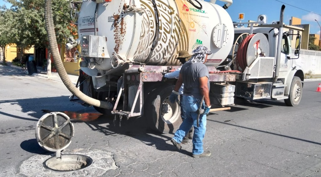 Reynosa, Tam.- Por instrucciones del Alcalde, Carlos Peña Ortiz, la Comisión Municipal de Agua Potable y Alcantarillado de Reynosa llevó a cabo el sondeo en la línea general de drenaje sanitario y limpieza de pozos sobre la avenida Loma Dorada, entre calle Nuevo Laredo, en el fraccionamiento Lomas del Real de Jarachina Sur.