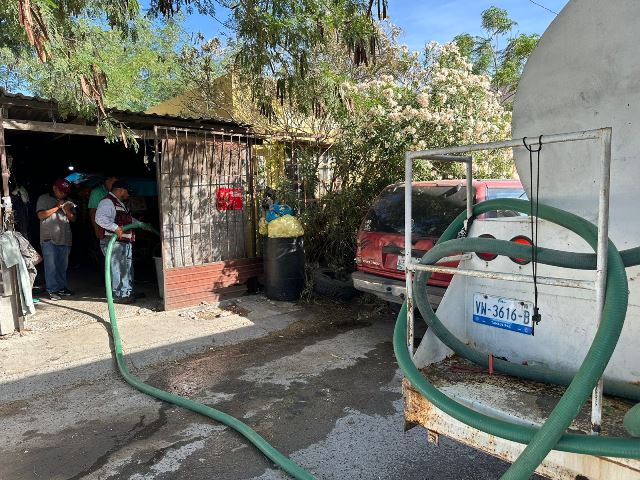 La distribución de agua en la colonia Hacienda Las Bugambilias es parte de los esfuerzos del Municipio para mitigar la escasez de agua, dando un alivio alternativo a los habitantes del área urbana afectada con la dotación gratuita de agua potable.