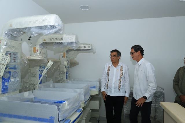 Luego de un amplio recorrido por las instalaciones del nuevo hospital, en donde constató la instalación de equipo médico y la terminación de algunas áreas, Américo Villarreal afirmó que, a lo largo de su administración, se ha desarrollado obra pública en los 43 municipios por más de 8 mil millones de pesos, con recursos del presupuesto estatal. Destacó obras de infraestructura vial, agua potable, energía sustentable y de salud que, como este centro médico, se consolidan para el progreso y bienestar de las y los tamaulipecos.