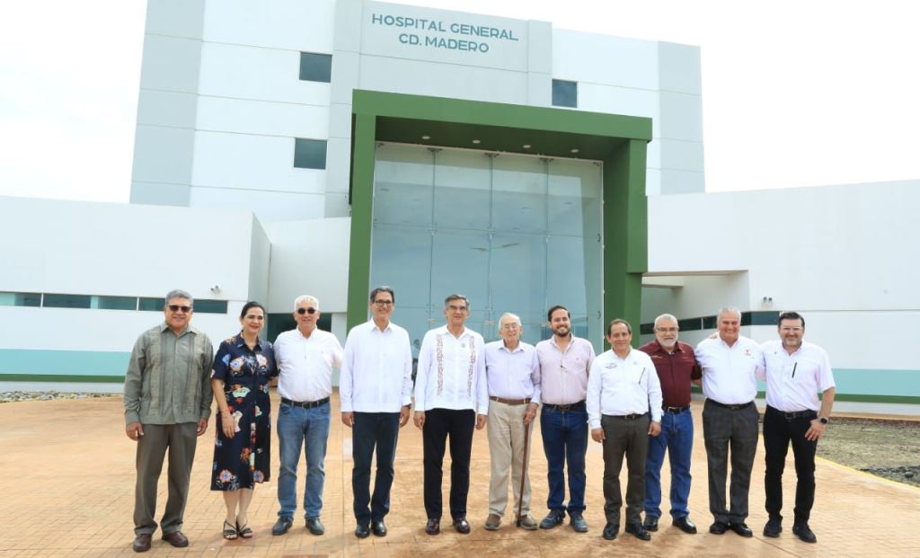 En el recorrido del nuevo hospital y en la conferencia de prensa acompañaron al gobernador: Vicente Joel Hernández Navarro, secretario de Salud; Marggid Rodríguez Avendaño, coordinador del IMSS-Bienestar en Tamaulipas; Mónica Villarreal Anaya, presidenta municipal de Tampico; Erasmo González Robledo, presidente de Madero, y Armando Martínez, presidente municipal de Altamira.