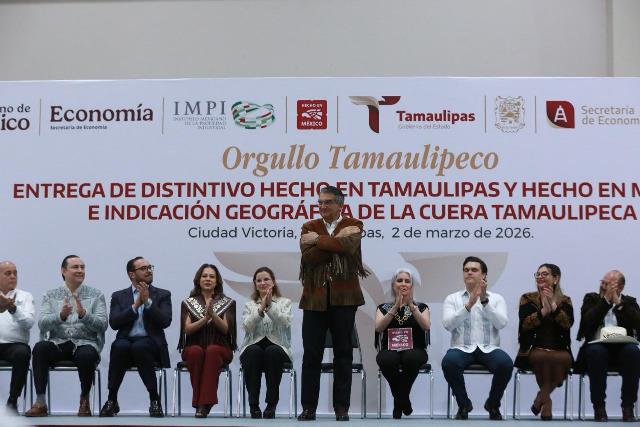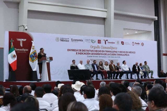 “Vamos a exportar desde aquí lo que se produzca, porque aquí tenemos talento, tenemos compromiso y tenemos también muchas ganas de demostrar, desde Tamaulipas, que lo hecho en Tamaulipas y lo hecho en México está mejor hecho”, expresó la representante del secretario de Economía, Marcelo Ebrard, al encabezar junto al gobernador del Estado la ceremonia de entrega del distintivo Hecho en Tamaulipas y Hecho en México y la Indicación Geográfica de la Cuera Tamaulipeca.