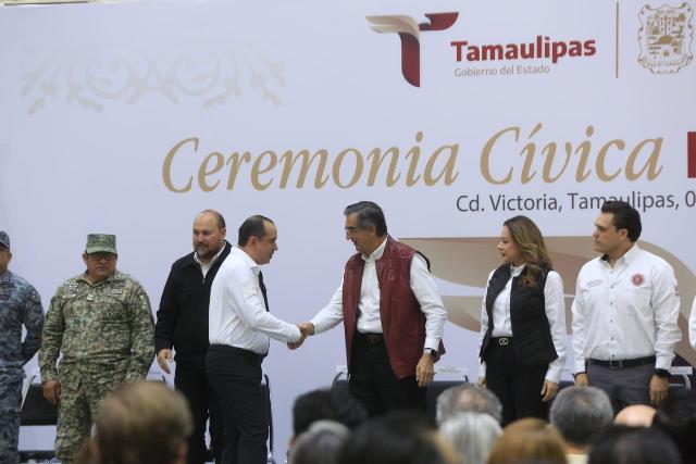 Al presidir la primera ceremonia cívica de honores del año nuevo, en la explanada de Palacio de Gobierno, el jefe del Ejecutivo estatal destacó que en Tamaulipas existen condiciones favorables para continuar nuestra transformación, aun frente a un entorno internacional en el que diferencias y divisiones políticas antagónicas han sembrado discordia e incertidumbre, generando hostilidades que han rebasado el terreno de la diplomacia, causando sufrimientos a millones de personas y familias que son arrastradas a conflictos de orden geopolítico, contrarios al derecho, a la razón y a la empatía que debe existir entre semejantes.