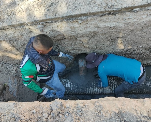 Reynosa, Tam.- Por instrucciones del Alcalde, Carlos Peña Ortiz, la Comisión Municipal de Agua Potable y Alcantarillado de Reynosa realiza trabajos de reemplazo de tubería de PVC de 12 pulgadas de diámetro en la toma de descarga sobre la calle Dr. Plata, entre Dr. González y Avenida Rodolfo Garza Cantú, con el objetivo de mejorar el funcionamiento del sistema de drenaje sanitario en el sector y optimizar el servicio para las familias de la zona.