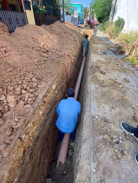En esta ocasión, las cuadrillas del organismo realizan maniobras de rehabilitación de drenaje sanitario sobre el callejón Chiapas, esquina con Sinaloa, en la colonia Rodríguez. Durante estas acciones se lleva a cabo el reemplazo de tubería sanitaria de PVC de 8 pulgadas de diámetro, con el propósito de optimizar el funcionamiento del sistema y garantizar un mejor servicio a los usuarios del sector.