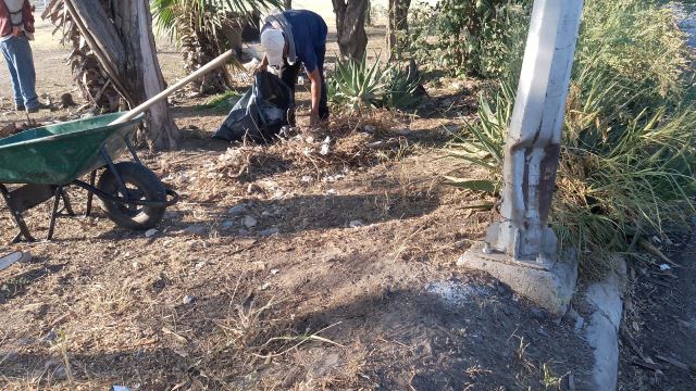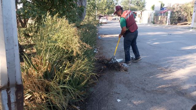 Este día se dan también algunas de las actividades con que finalizará el saneamiento de la colonia Lomas Real de Jarachina Sur, donde los trabajadores realizan el raspado y barrido de cordones y banqueta así como el levantamiento de Maleza.